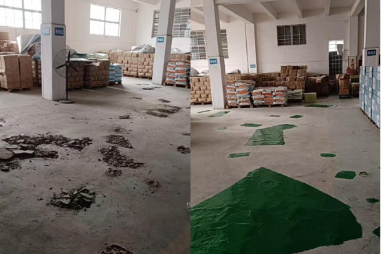②庫區地面破損修補前??????????????? 庫區地面破損修補后