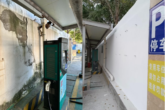 ③充電站圍墻破裂修補前?????????????? 充電站圍墻破裂修補后
